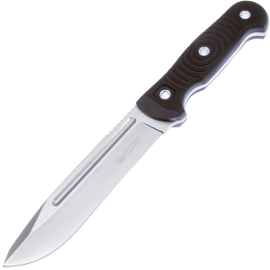 Простое сочетание силы и красоты как в клинке, так и в рукояти дарит вам нож серии Maximus, стоит только обратить внимание на его положительные стороны: стильный и мощный клинок, выполненный из Satin достаточно широк, больше 5 мм, сталь очень высокого качества AUS-8 дает спокойствие своей стойкостью к коррозии и внешним факторам, универсальная и эргономичная рукоять подходит для всех типов строения кисти руки, выполнена из материала G10,который славится своей прочностью, не дает ладони соскальзывать вот что делает нож незаменимым помощником. Также в комплектации идет практичный и удобный MOLLE-совместимый чехол, который позволяет закрепить ножны на любой поверхности.