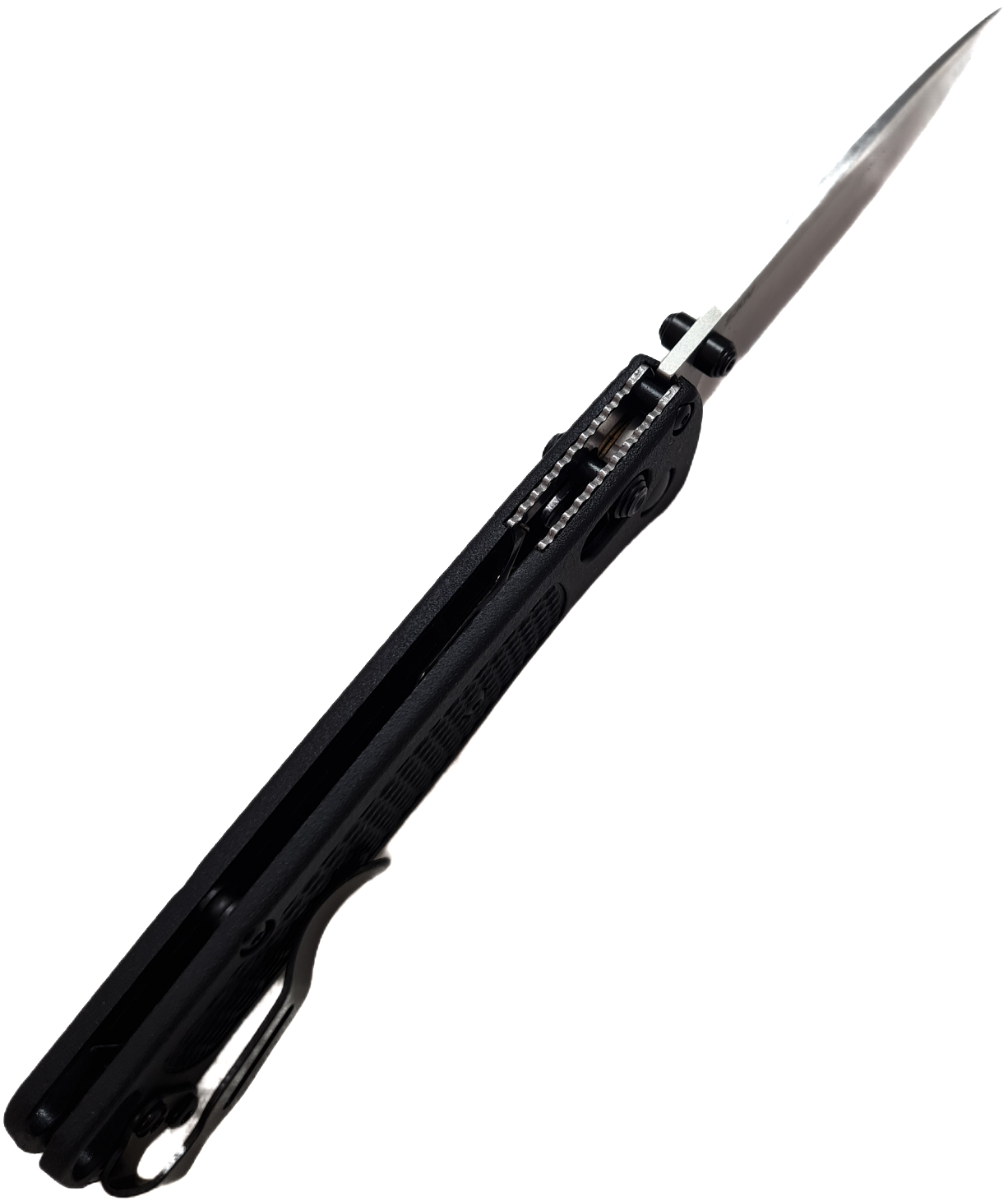 2. Фиксирующий замок - Axis-lock — это современный и высокотехнологичный механизм фиксации клинка, основная особенность заключается в использовании цилиндрического штифта, расположенного поперек рукояти, который удерживает клинок в открытом положении за счет пружинного давления. Для разблокировки клинка необходимо потянуть этот штифт назад, что освобождает клинок и позволяет ему сложиться.