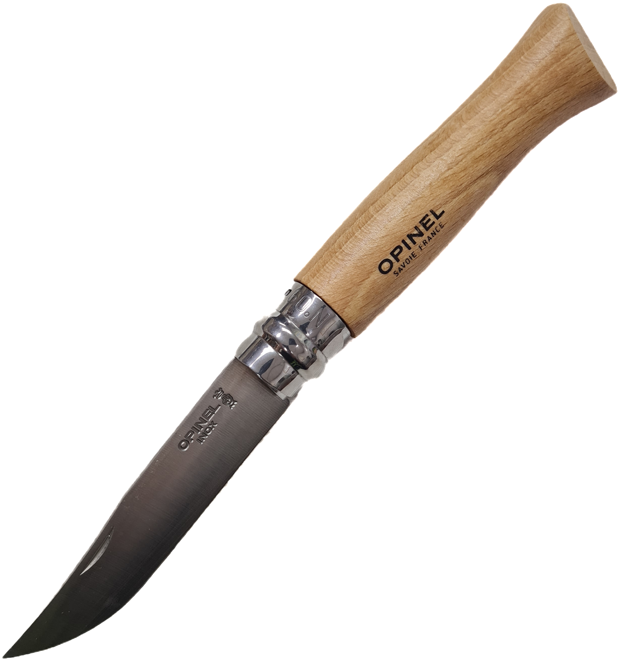 7. Материал рукояти - Буковая древесина: Традиционный материал для ножей Opinel; Природная текстура бука; Комфортное хват; Лёгкий вес; Классический французский дизайн.