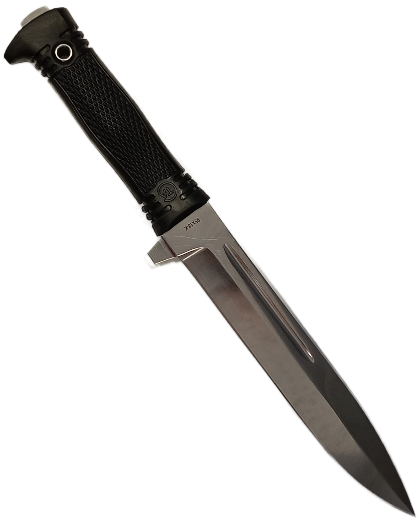 2. Материал клинка - Сталь: 95Х18 - отечественная коррозионностойкая высоколегированная сталь - достаточно высокой твёрдости. Долго сохраняет остроту режущей кромки. Прекрасно противостоит нагрузкам.