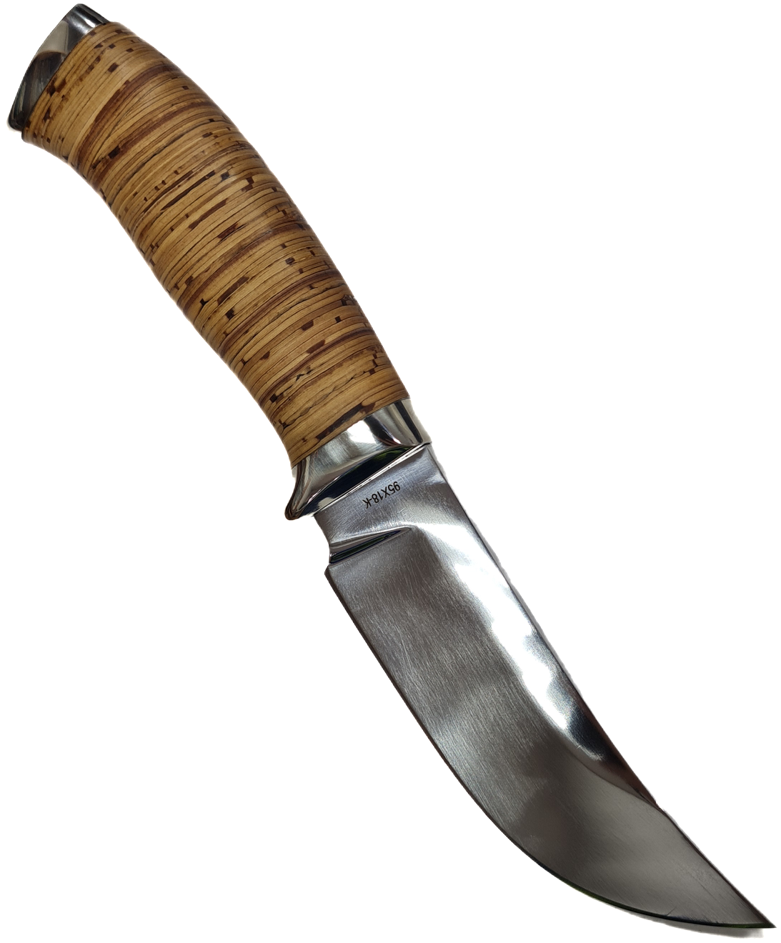 2. Материал клинка - Сталь: 95Х18 - отечественная коррозионностойкая высоколегированная сталь - достаточно высокой твёрдости. Долго сохраняет остроту режущей кромки. Прекрасно противостоит нагрузкам.