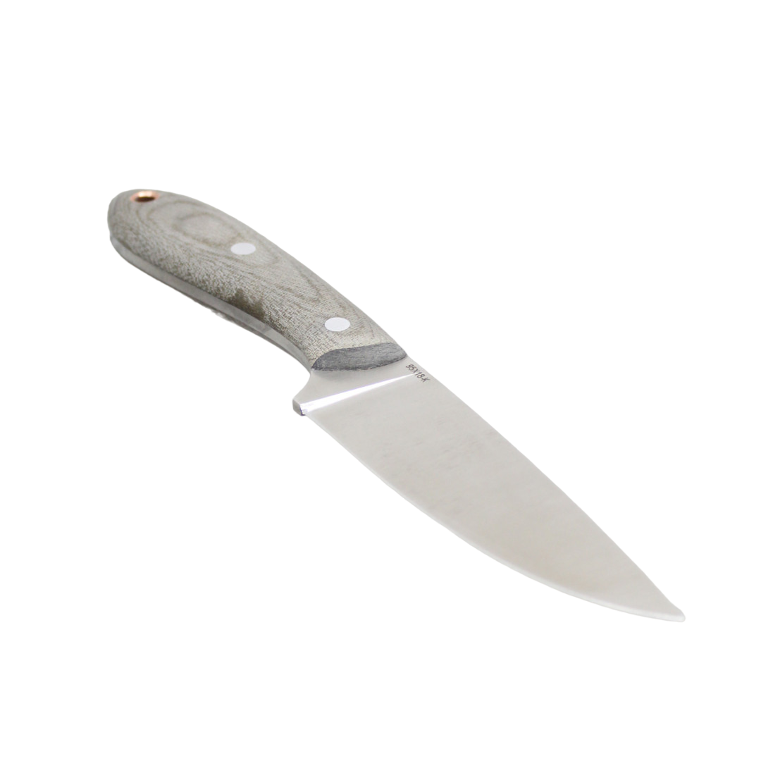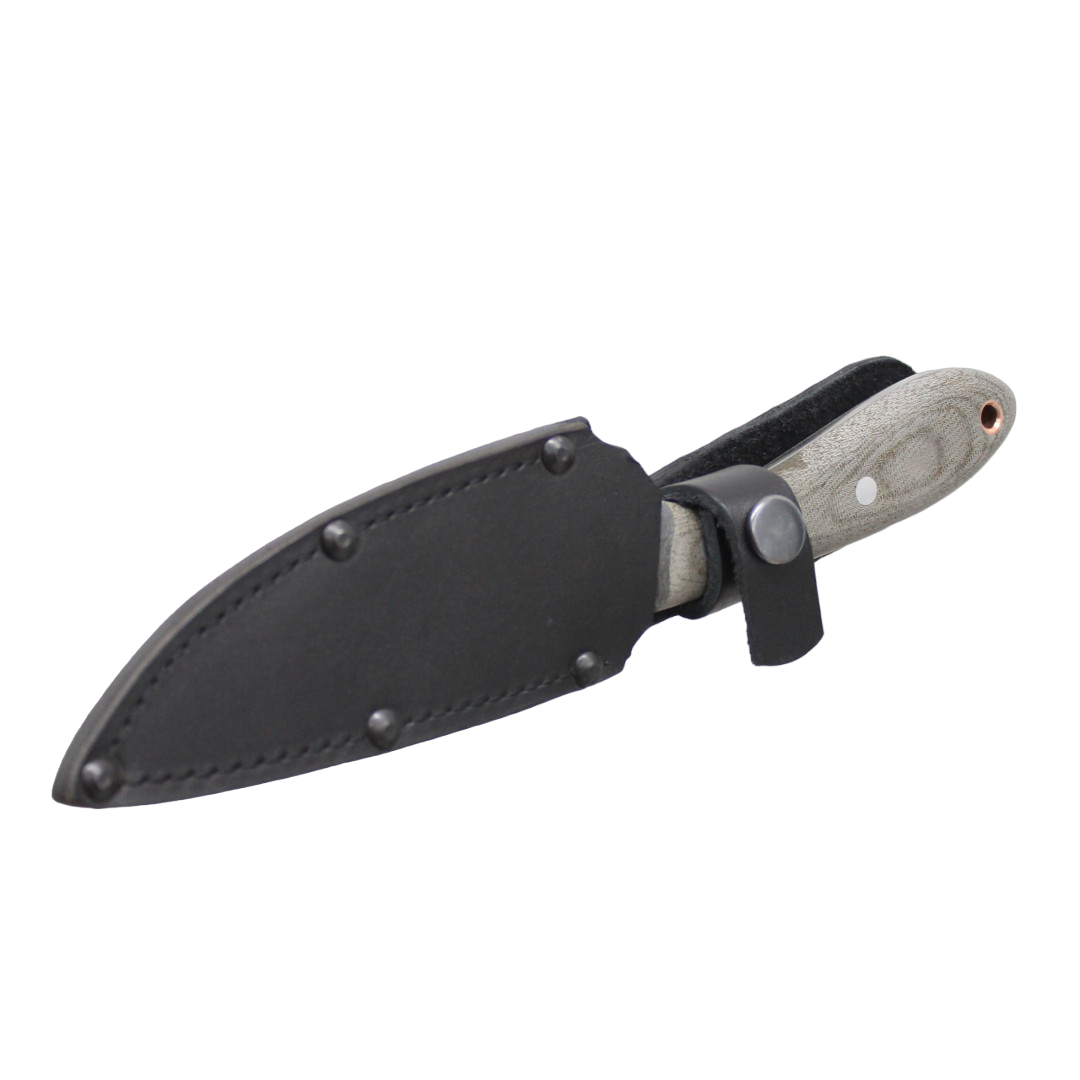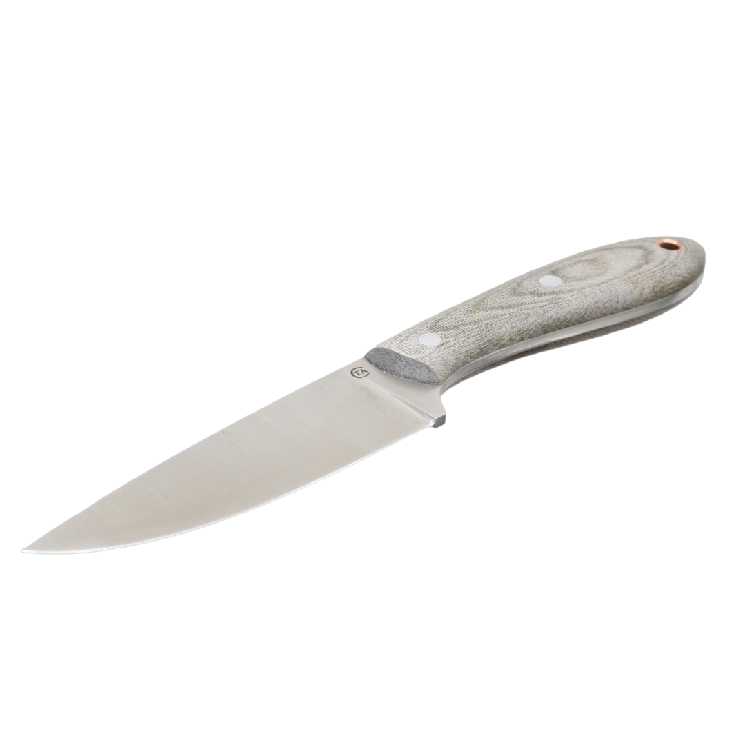 Форма клинка – S-образная (recurved blade), «рекурва». Такая форма ножа дает возможность делать точный глубокий рез на плоской поверхности – например, при работе с продуктами питания и материалами, при этом нижний упор не мешает работе. S-образный изгиб режущей кромки (РК) дает возможности осуществления самого удобного, среди прочих вариантов, выполнения реза на весу, при удержании обрабатываемого материала (предмета) одной рукой. Также эта форма изгиба выгодно отличается от других и при резке материалов с опорой на поверхность, так как изогнутость РК внутрь, лучше фиксирует обрабатываемый материал при давлении РК на него.