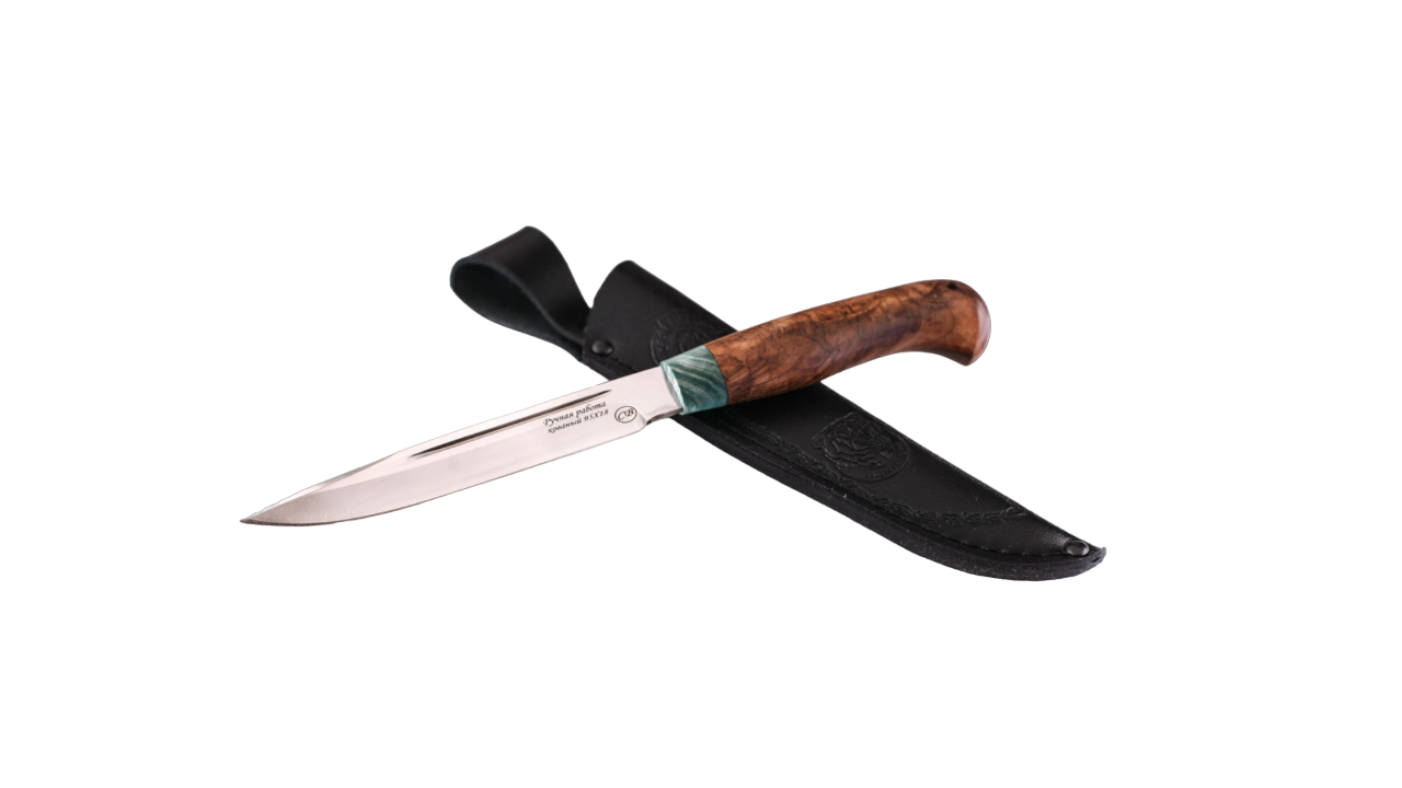 2. Материал клинка - нержавеющая сталь 95х18 — российский аналог марки 440С. Сплав содержит 0,95% углерода и 18% хрома, что обеспечивает высокую коррозионную стойкость и износоустойчивость. Ковка клинка повышает его плотность и прочность, устраняя внутренние дефекты металла. Сталь легко затачивается и долго сохраняет остроту.