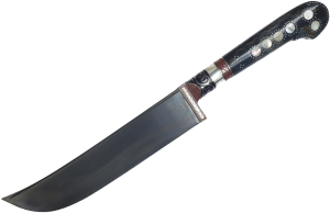 Форма клинка - «Тугри» - Форма характеризуется прямым обухом с небольшим сужением лезвия к верху. Заточка режущей кромки выводится в 0, поэтому работать с таким ножом очень удобно при обработке овощей. Резать твердые материалы (к примеру, кости) или рубить с его помощью не рекомендуется.