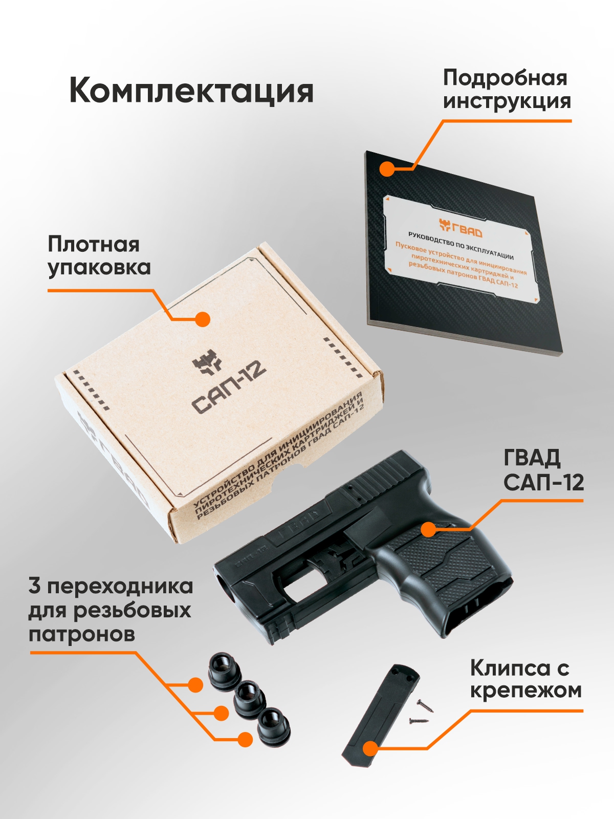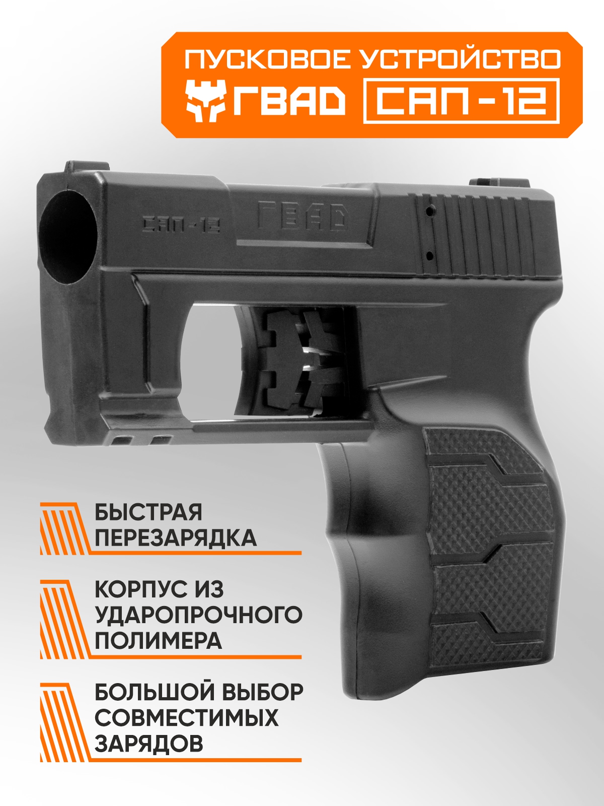 • Доступность. ГВАД САП-12 не является оружием и не требует лицензий и разрешений на приобретение.