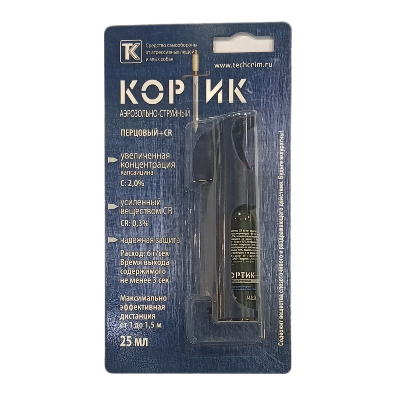 Баллон Кортик - мало габаритный и крайне сильный перцовый баллончик, концентрация капсаицина которого выше в два раза чем у обычных перцовых баллонов по типу Black 25 ml