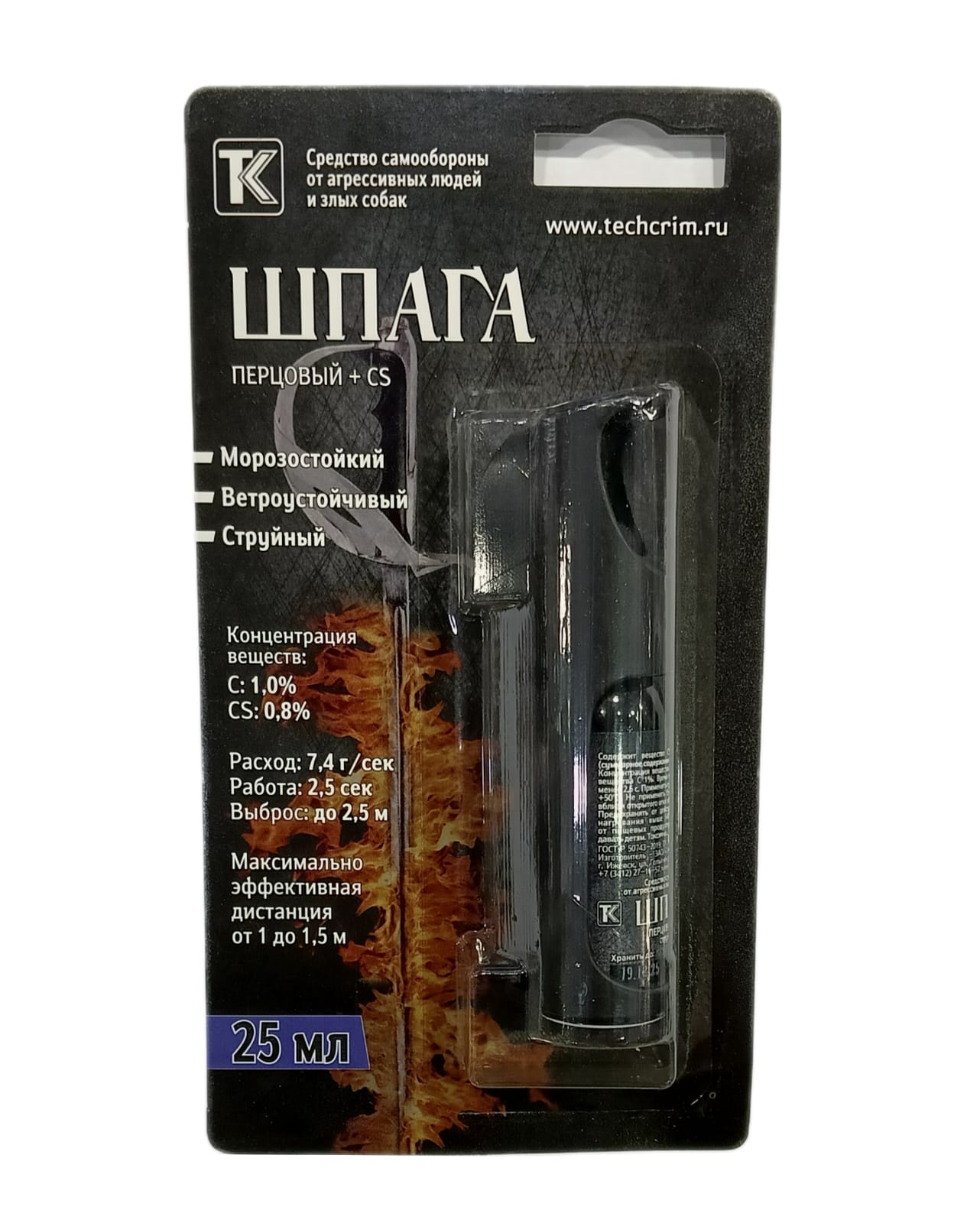CS (синтетическое вещество, хлорбензальмалонодинитрил, газ "Сирень"): 150 мг; Tcs: 0,8%